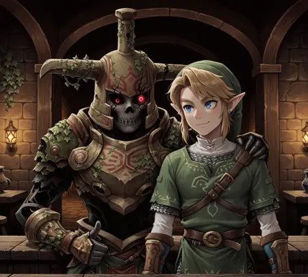If you want to try to dress a character in his armor, just remove all the character-related tags and leave only the armor-centric ones. It worked relatively well when i tried it with Link, but the helmet may not generate correctly.