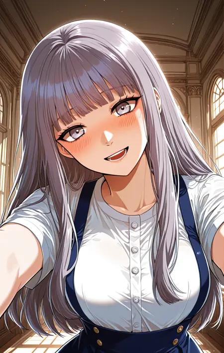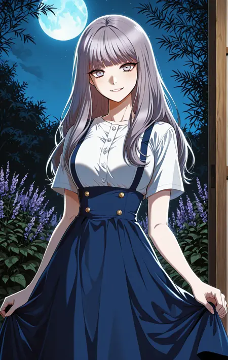 サンファ、1人 Girl、単体、ラベンダー灰色の瞳、長い髪、ラベンダー灰色の髪、ストレートヘア、フルバン、ストレートバン、サイドロックス、肩までの髪、