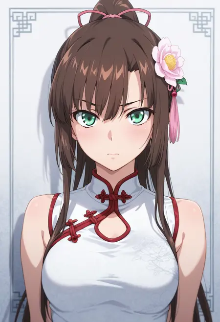 Trigger Words: kirasaka sayaka, long hair, brown hair, green eyes
