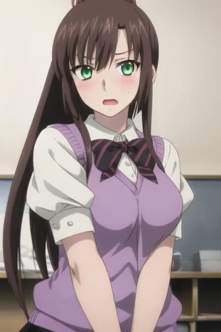 트리거 단어: kirasaka sayaka, 긴 머리, 갈색 머리, 녹색 눈