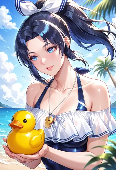 캐주얼 복장: 피니테일, 높은 피니테일, 학교 교복, 스커트, 세라후쿠, 주름 스커트, 파란 스커트, 코트, 리본, 활, 보석, 귀걸이, 넥커치프, 긴 소매, 헤어 볼, 헤어 리본, 빨강 리본, 해적 칼라, 파란 해적 칼라, 빨강 넥커치프, 오픈 코트, 빨강 활, 재킷, 셔츠, 갈색 코트, 오픈 복장, 흰 셔츠, 대체 복장, 후드, 입술