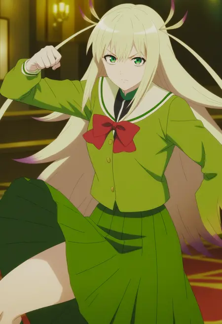 | 训练词汇 | Kanon Hisui,1girl,blonde hair,long hair,extra hair,partial highlights,hair highlights,purple hair,green eyes,已复制! Black JK Outfit,black serafuku,school uniform,skirt,socks,loafers,red bowtie,已复制! white JK Outfit, white serafuku,serafuku, sailor collar, necktie,已复制! Green JK Outfit, green serafuku,school uniform,red bowtie,skirt已复制! holding green glowing knife,green glowing knife,已复制! 请为我的作品点赞👍,谢谢/Please give my Lora a thumbs up 👍,Thank you.已复制! |