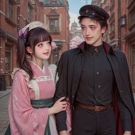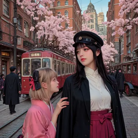 注意: これは時代の雰囲気をシミュレートしたものです。歴史的細部に深く入り込む必要はありません。平行世界として扱ってください。遠くの建物の細部を補完する点で、現実的なベースモデルを使用して例画像を提示しましたが、トレーニングデータは完全に2Dです。現実的なベースモデルで全身画像を生成する際は、ADetailerの有効化を推奨します。関連するプロンプトについてはdanbooruを参照してください。↓↓↓
