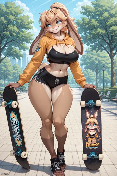 LopSW, ファリー, ウサギ少女, 長い髪, 茶色の髪, ポニーテール, 青い目, 動物の耳, ウサギの尻尾, 柔らかい毛並み,