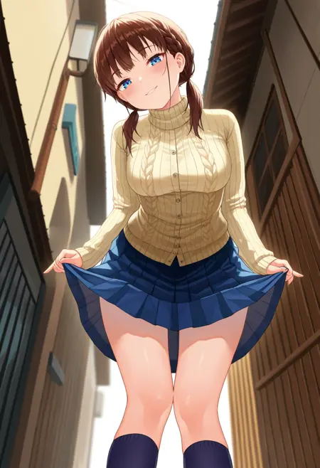 yuriebww, 青い目, 茶色の髪, 中程度の髪, ツインテール, 片側の髪, 前髪, 中程度の胸,