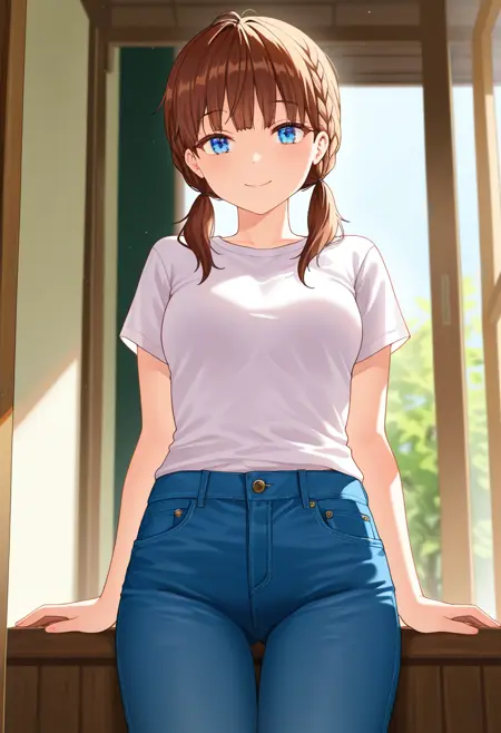 - yurieww, 青い目, 茶色の髪, 短髪, 低いツインテール, 短いツインテール, おさげ, 耳の後ろの髪, 肩越しの髪, 前髪, 中程度の胸,