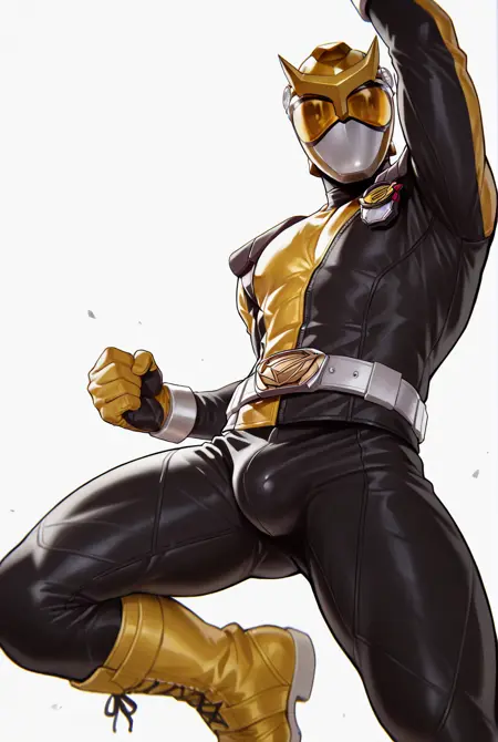 buster beet, tokusatsu, helmet, mask, bodysuit, jacket, gloves, belt, black pants, yellow footwear, boots