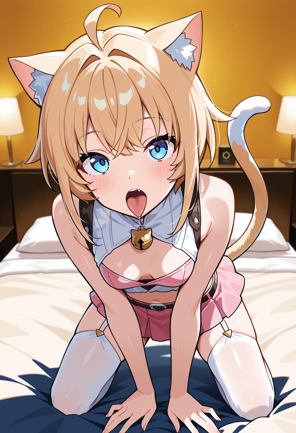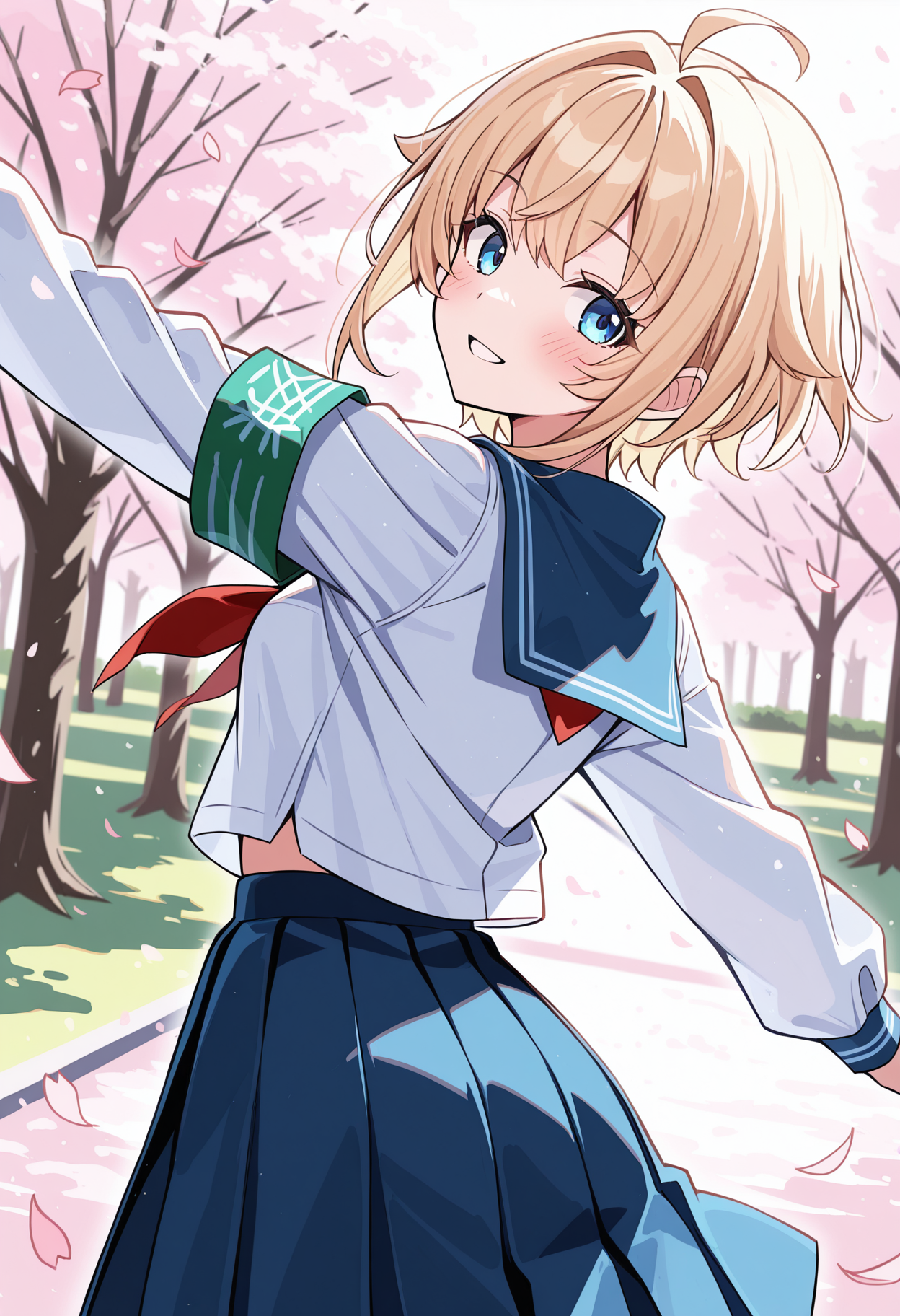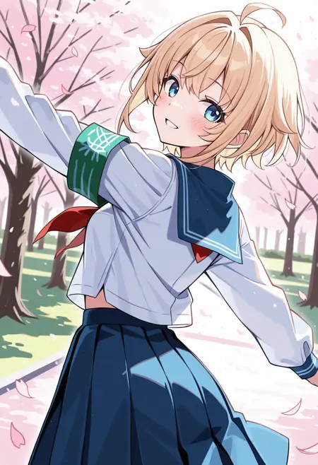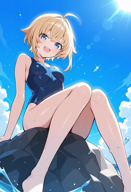1girl, blonde hair, short hair, bob hair, bangs, sidelocks, ahoge, blue eyes, small breasts,