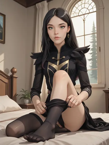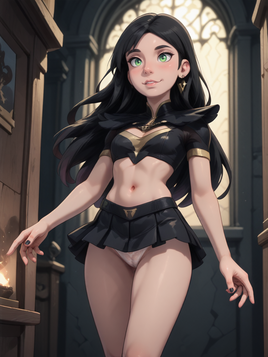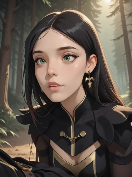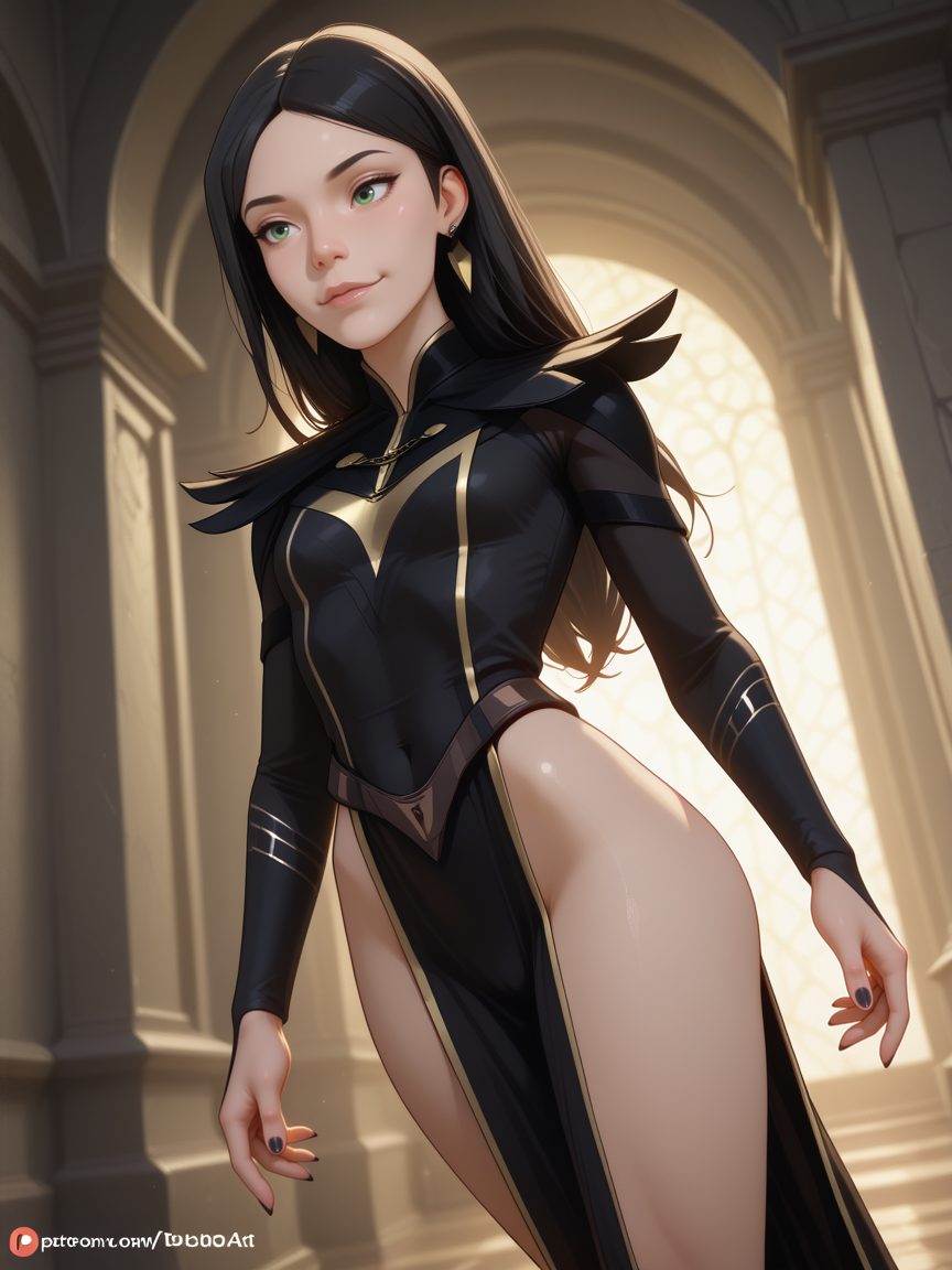 触发标签:claudiadp,黑发,长发,绿眼,黑色指甲,珠宝,耳环,黑色长裙