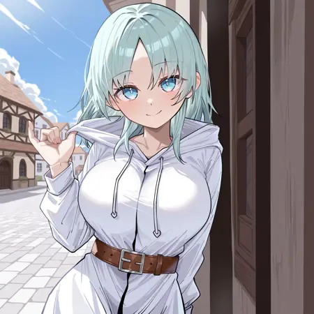 outfit 2: alfanun, hooded dress, dress, belt, long sleeves