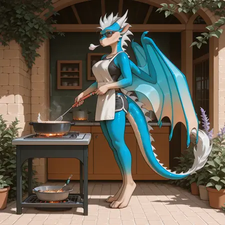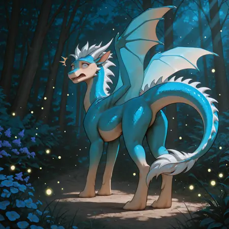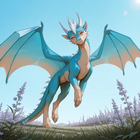 Fleily_LV, dragon, gradient wing membrane, beige feet, multicolored eyes, spiked up mohawk