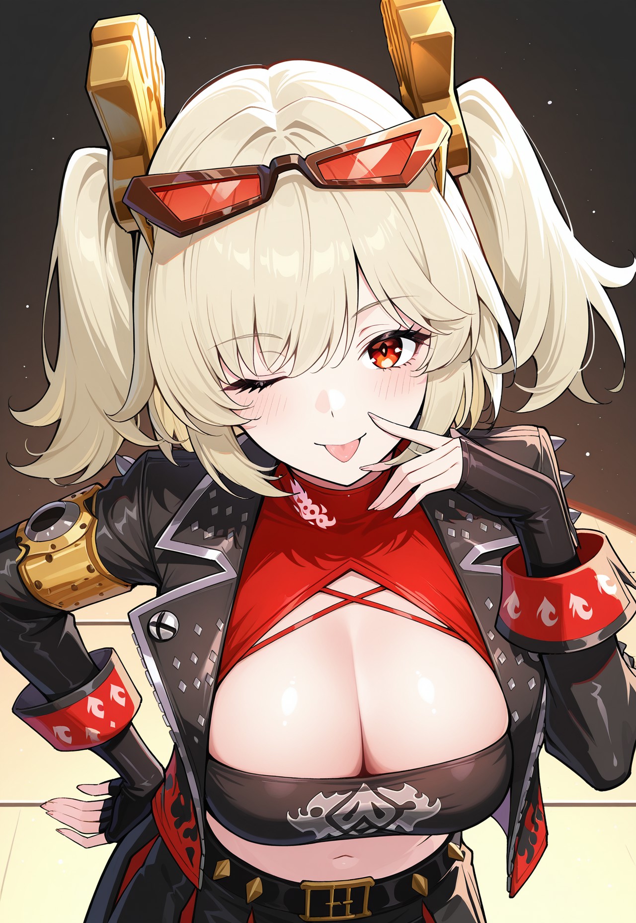 burnicexl1111, burnice, 金发,双侧高束,发夹,短发,眼镜戴在头上,红眼,