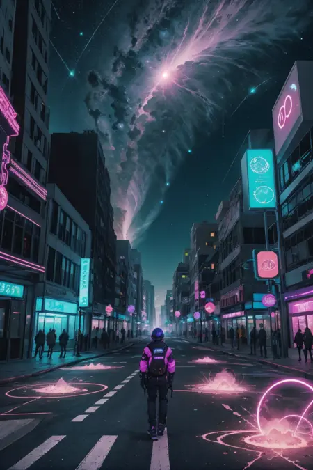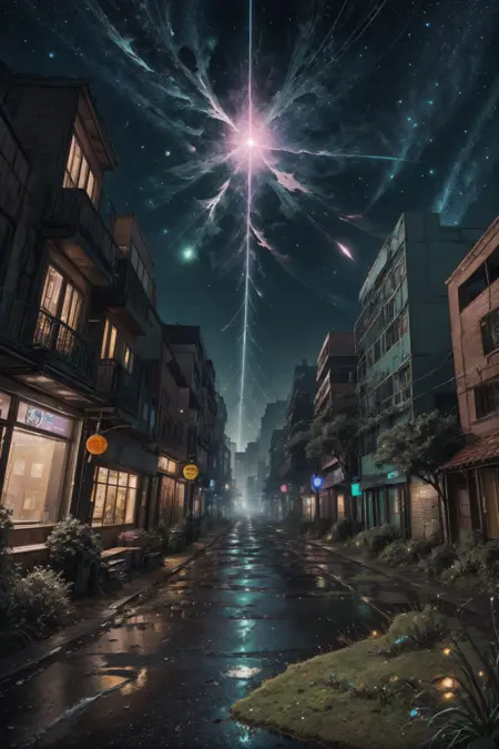 接着添加一个或多个该LoRA偏爱的元素,比如“星星”和“发光的、梦幻的、多彩的主题”。
