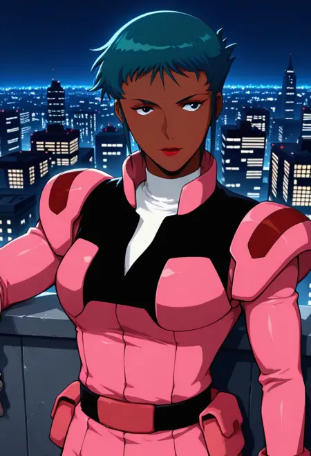white t-shirt, pink pilotsuit, gauntlets, pilotshoes