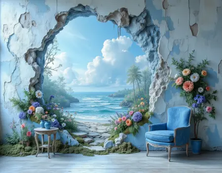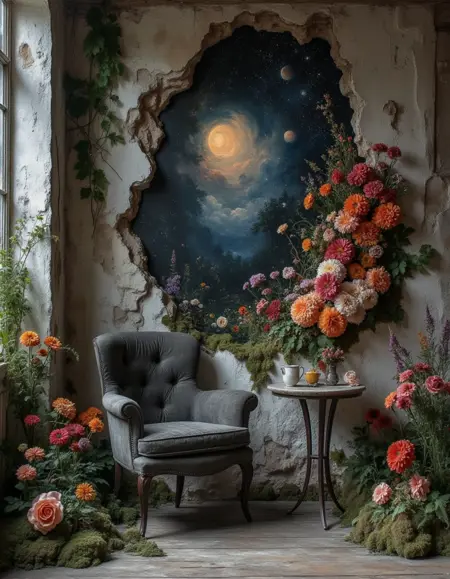 一个战损风格的梦幻花墙,也可用于人像摄影