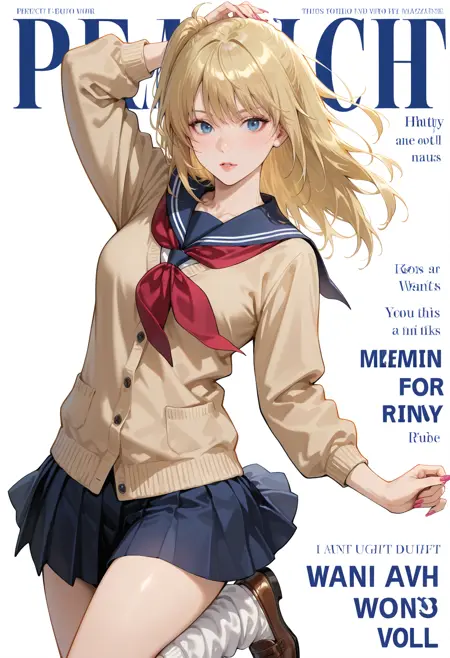 대체 복장: 학교 교복, 느슨한 양말, 치마, 세라후쿠, 양말, 스웨터, 신발, 주름 치마, 로퍼, 파란 치마, 넥커치프, 흰 양말, 고야루, 갈색 신발, 미니 치마, 레그워머, 가슴, 카디건, 선원 collar