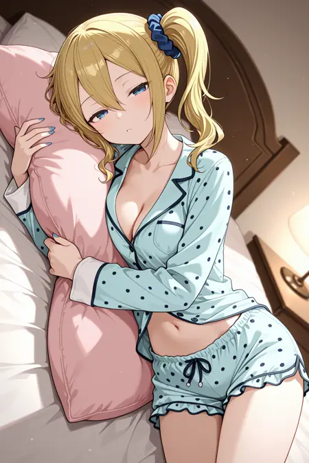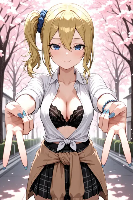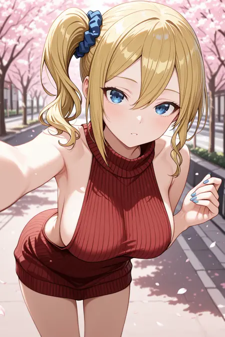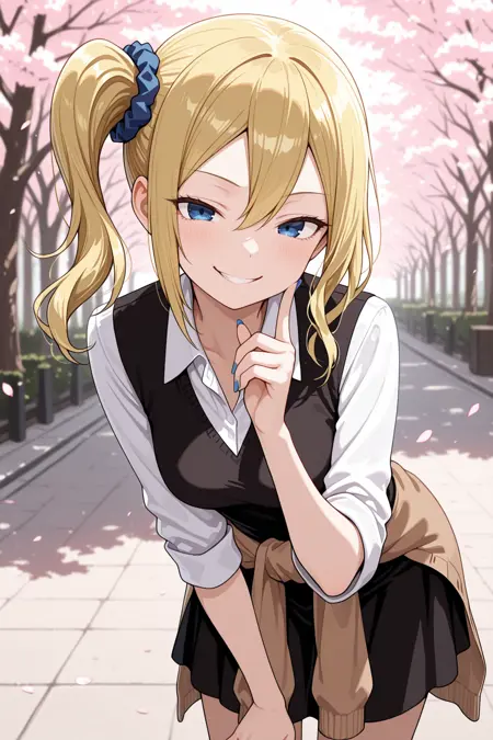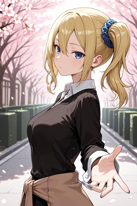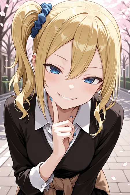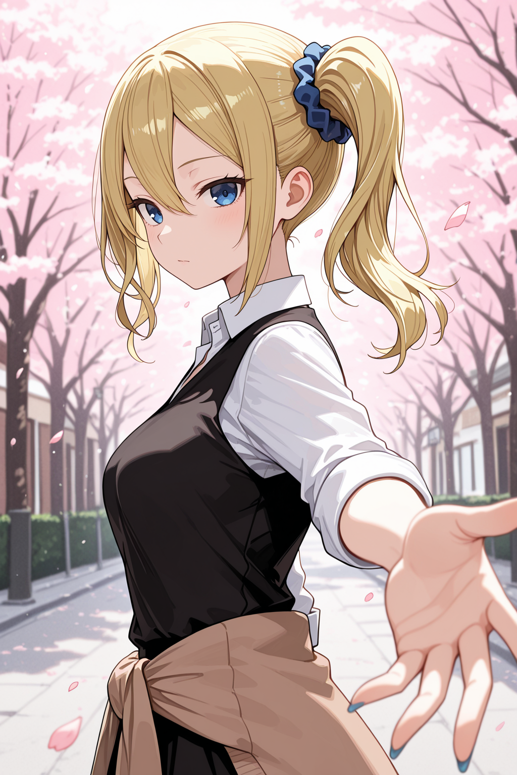hayasaka ai, 蓝色眼睛, 金发, 侧马尾, 马尾, 发圈, 蓝色发圈, 蓝色指甲