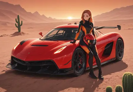 ``Ko3n1g53gg``을 사용하여 얼음으로 뒤덮인 호수변에서 사막의 비행장까지 어떤 환경에서도 고성능 슈퍼카를 배치하세요. 이 모델은 차량의 정체성을 태그에서 분리하도록 훈련되어, 외관 키워드에 의존하지 않고 트리거 명령이 형태와 자세를 완전히 통제할 수 있습니다.