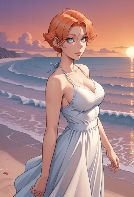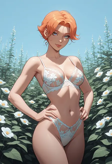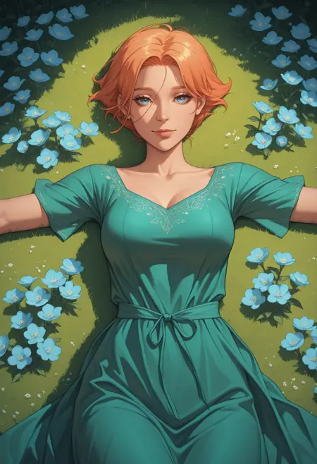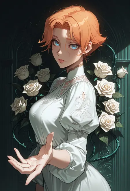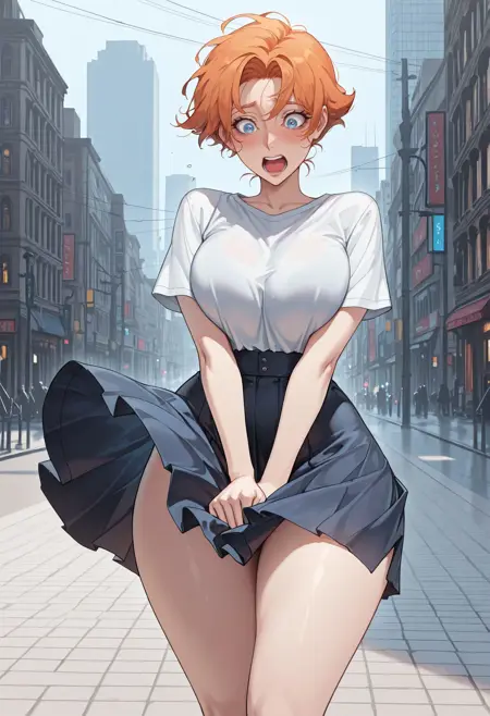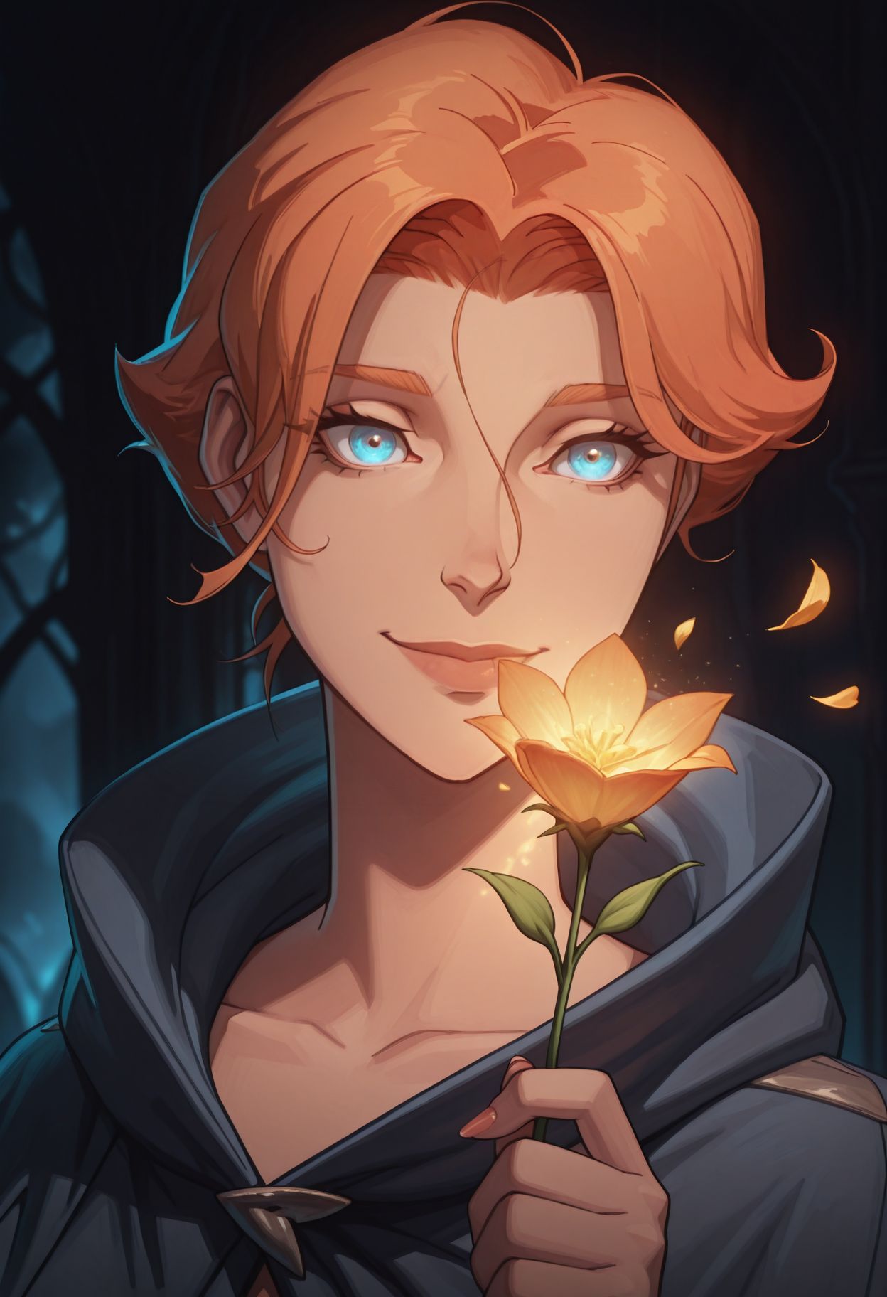 Syph4, 1girl, short hair, orange hair, blue eyes