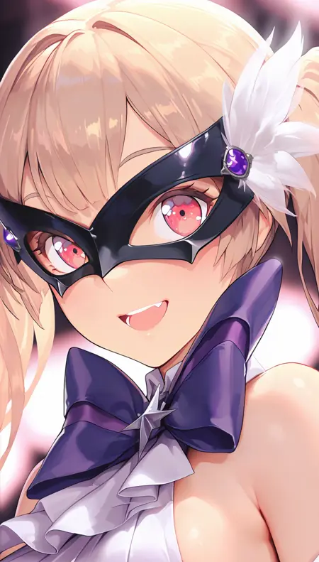 예시 프롬프트: 빨간 눈, 트윈테일, 금발, 긴 머리, 매우 긴 머리, 앞머리, 작은 가슴,
