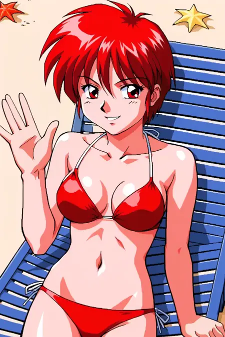 ViperV6Miho, 레트로 아트스타일, 금장이 있는 흰색 짧은 중국복, 빨간 띠, 1990년대 스타일, 가슴,