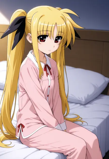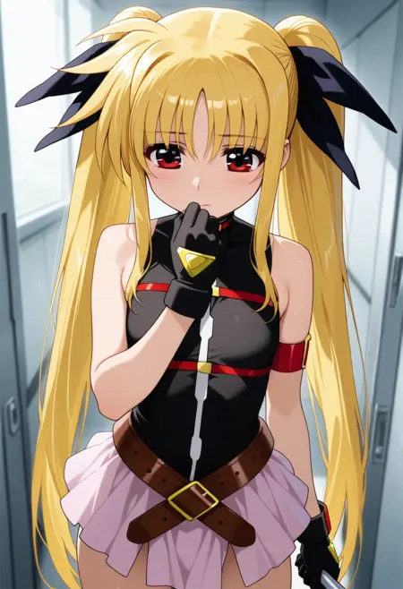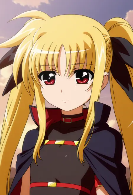 Trigger Words: fate testarossa, long hair, blonde hair, red eyes, twintails
