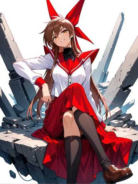 楯無 ・tatenashi,red sailor collar,black turtleneck,white shirt,zipper,long sleeves,red long skirt,black knee high socks,brown loafers,