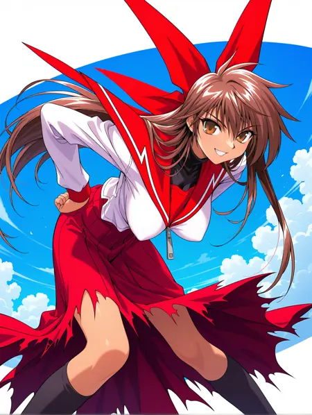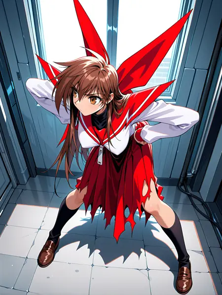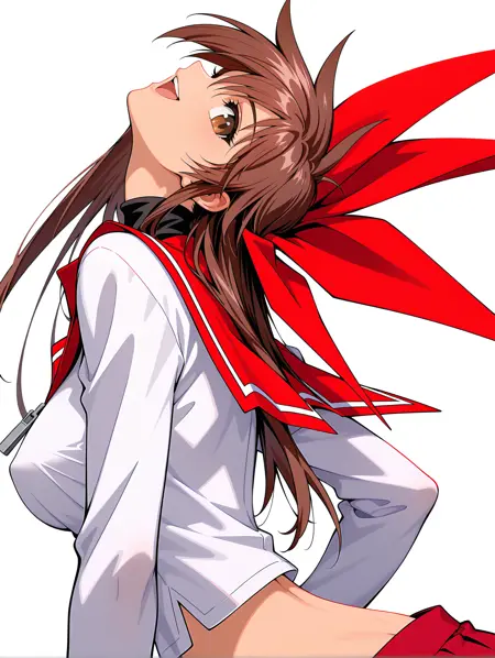 トリガーワード・kousaka_tokiko,hair_bow,brown hair,long hair,brown eyes,spike hair,