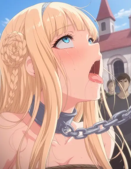 Elisabeth & Angelica from H anime "Zoku Oujo & Onna Kishi W Dogehin Roshutsu Chijoku no Misemono Dorei 王女&女騎士Wド下品露出 (OVA) ".