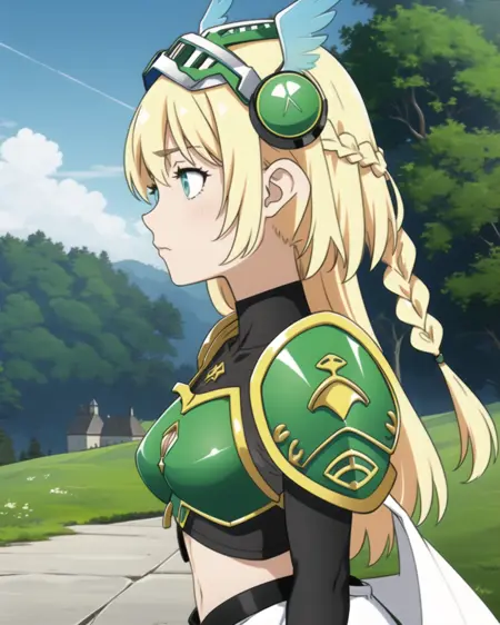 魔法装束: mgrcolga,带翅膀的绿色头盔,单袖灰色上衣,绿色带黄色肩甲,绿色带黄色胸甲,单只绿色带黄色护腕,绿色带黄色腰甲,灰色长裤,灰色腰带,白色带棕色裙摆