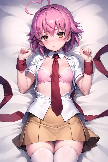 触发词:aino_heart, 1girl, 心形呆毛, 粉色头发, 短发, 棕色眼睛