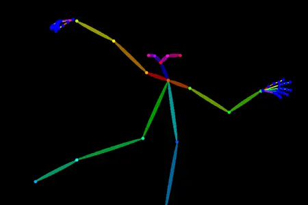 OpenPose骨骼结构及带有提示信息的示例图像。