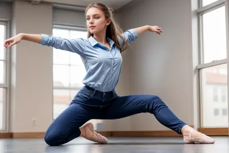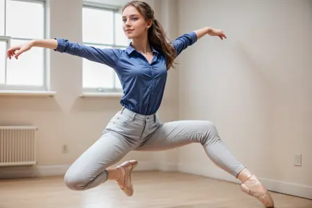 Prompt: full body, from above, practicing ballet