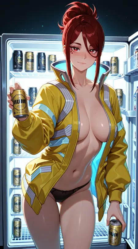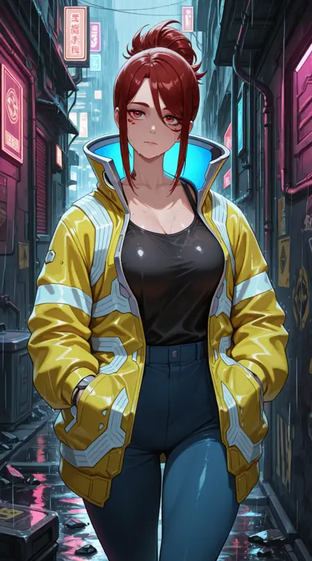 基本プロンプト:gloria_martinez, face_mark, edgerunner_jacket, black_tank_top, blue_pants