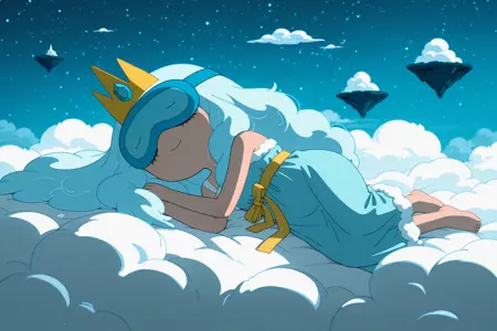 lumpy space princess,紫皮肤,彩色皮肤,凹凸身体,黄星,额星,漂浮,空中