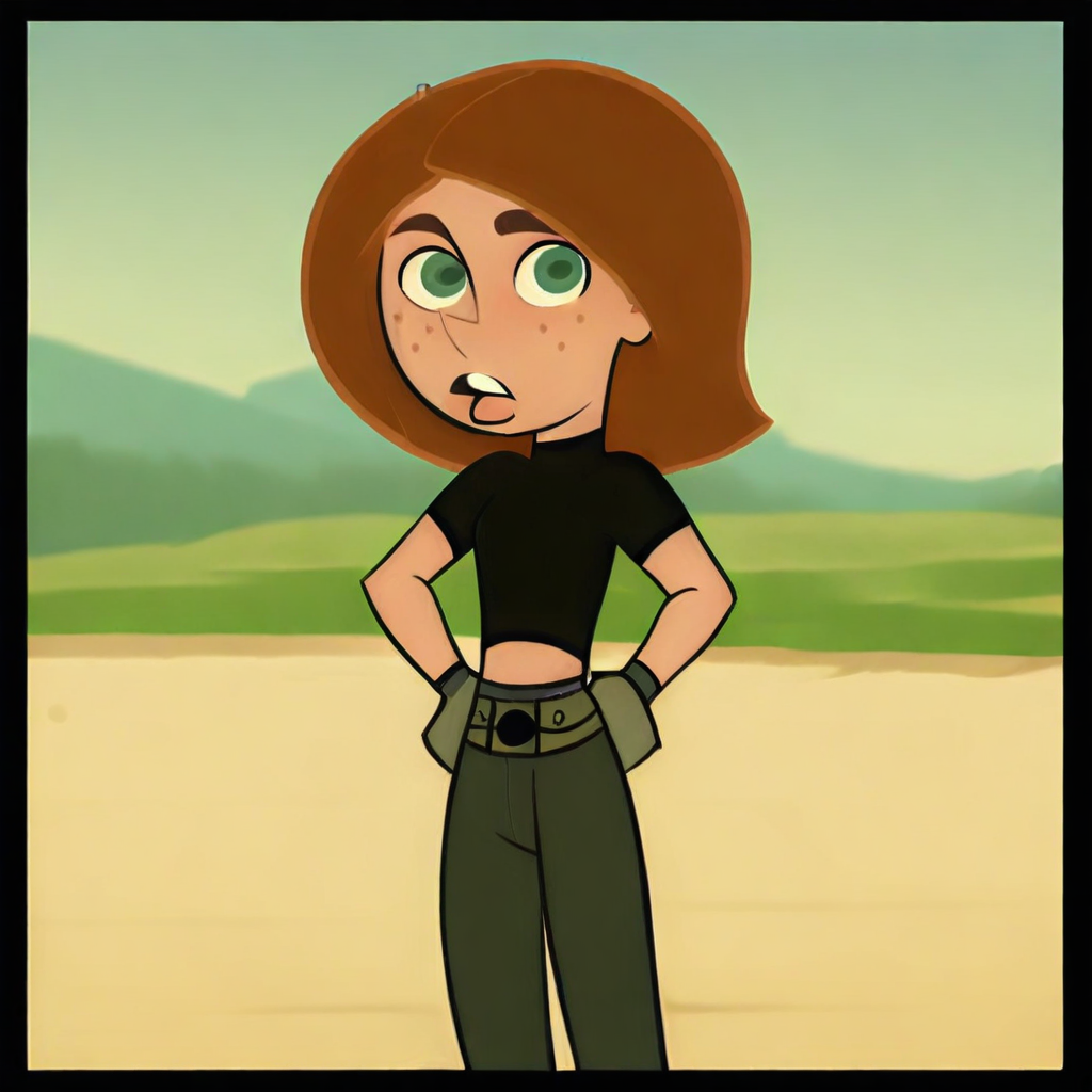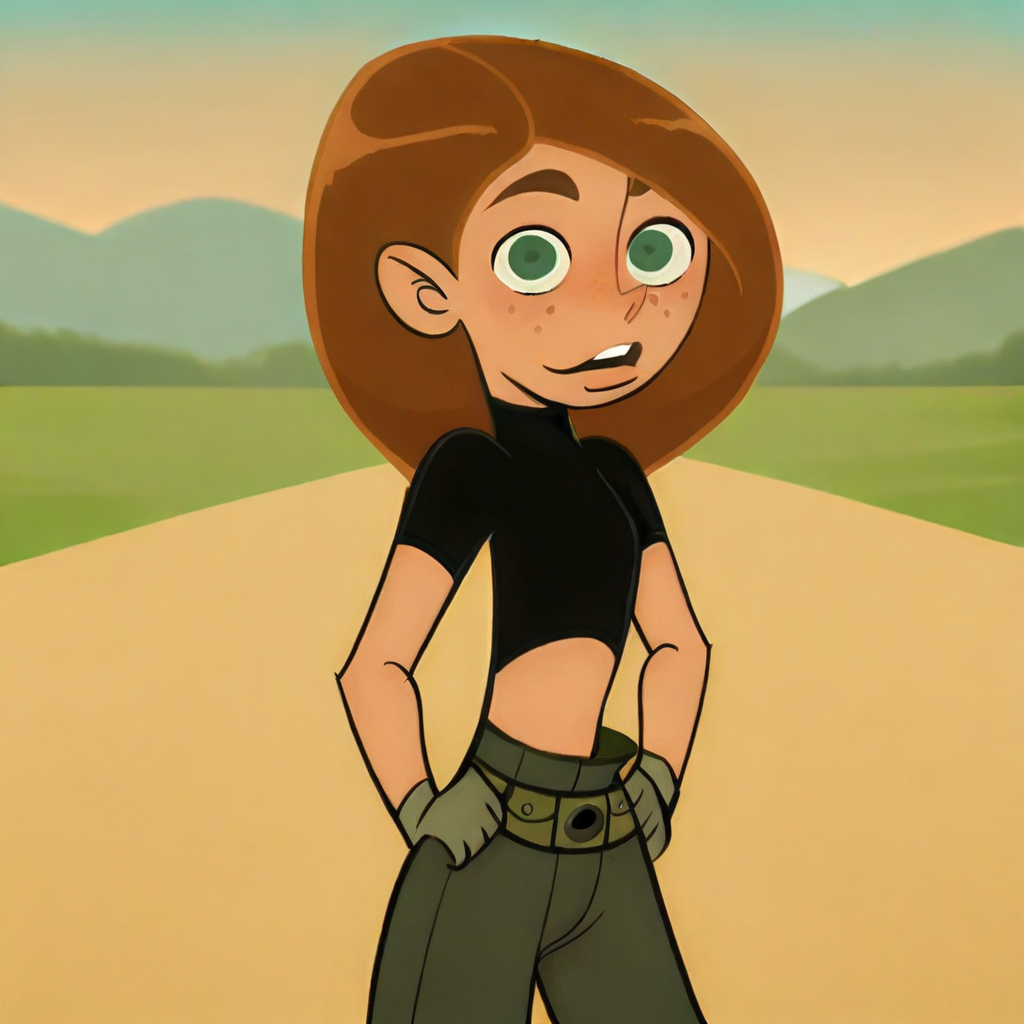 1girl, solo, 4K, brown hair, green eyes, freckles, preteen, extremely upturned nose tip, upturned nose, very concave nose bridge, black turtleneck crop top with elbow length sleeves, olive green pants, josspossibe, olive green gloves