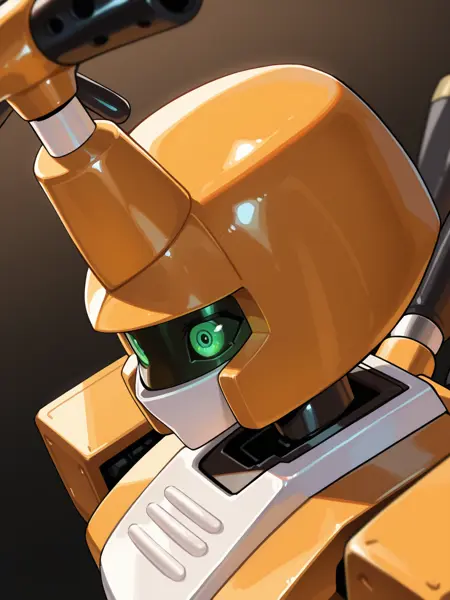 トリガー単語: metalbeetle, robot, mecha, no humans, humanoid robot, green eyes,