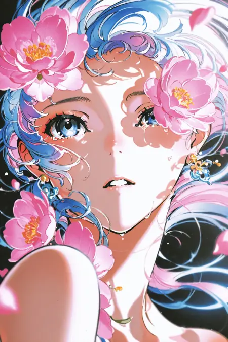 米山舞无需多言,她独特的笔触、大胆的色彩运用,以及兼具碎片感与飘逸感的画面构图,都极为美妙!但也正因如此,导致LoRA难以训练到位——因为基于tag的提示词通常用于标注人物、动植物、建筑等现实存在的物体,而米山舞的作品更多是通过少量元素营造出独特的氛围感,而这种氛围感恰恰难以用简单的tag记录。因此,这次在标注时,我增加了更多“动词”和“形容词”,以提升模型对这种氛围感的学习能力。
