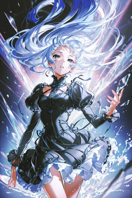 使用提示词:floating 可让绝大多数物体呈现出米山舞式的飘逸感(例如:floating hair,floating water,floating fire)。