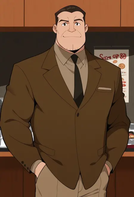 SBarkin, 남성, 성숙한 남성, 짙은 갈색 머리카락, 짙은 갈색 눈썹, 짙은 갈색 눈, 주름, 갈색 정장, 베이지색 칼라 셔츠, 검은 넥타이, 베이지색 정장 바지, 갈색 구두,