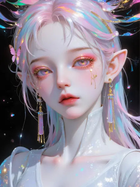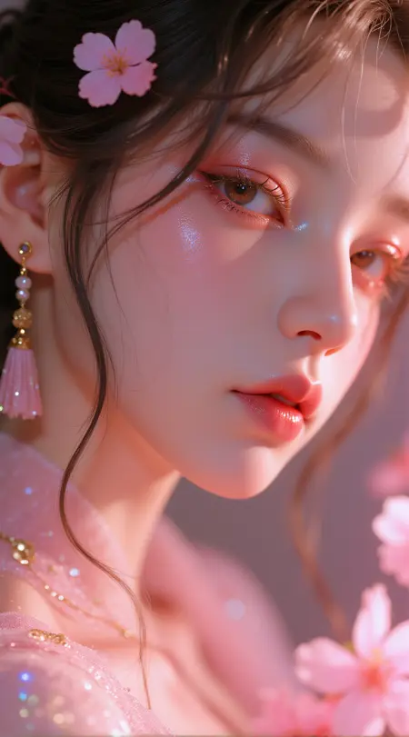 IBB_PINK_GIRL,Ultimate ultra-clear, ultimate detail, 3d model, virtual engine background transparent, soft focus, gorgeous light and shadow, light pink tone, ethereal, demon queen, pearlescent, reflective, shining, bright colors, vivid and distinct, strong contrast, high saturation, dream core, beautiful, sexy, female, close-up of face, delicate, chaotic, artistic, retro tone, costume, pink phoenix crown, depth of field Exquisite, masterpiece, ultimate detail, gold and silver bead hairstyles, complex picture, distinctive, creative, innovative, thick ink painting, proud, cold tones, exposed back shoulders, soft lighting, ultra-clear picture quality, delicate face, detailed eyes, close-up shots, fluid art, high detail, ethereal, gauze clothes. Hazy and broken, sad eyes look down, long eyelashes, closed eyes