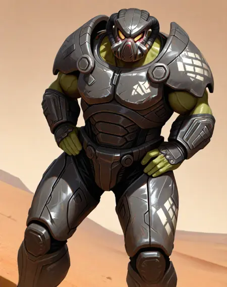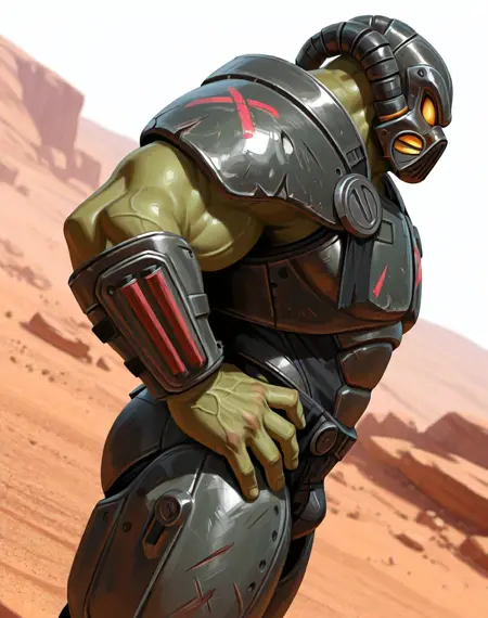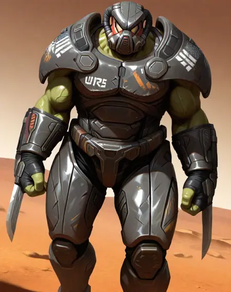このLoRA向けのプロンプトは次の通りです:(フランク・ホリジアン、筋肉質、アーマー)