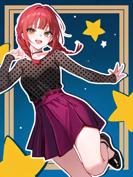 Prompt Words: Ririko Futamihara, Ririko Futamihara-defult_dress, yellow eyes, red hair, green jacket, grey school uniform,
