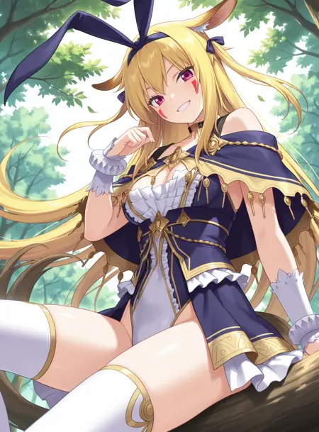 long hair, rabbit ears hairband, animal ears, facial tattoo,服/衣服/clothing: