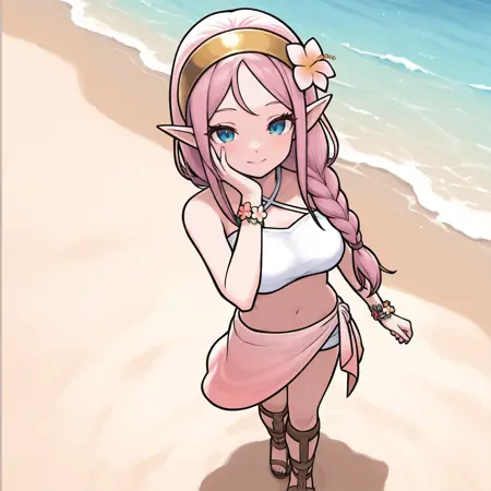 우선, 로즈는 원래 드래곤 퀘스트 IV의 캐릭터이지만, 이 LoRA는 주로 "드래곤 퀘스트 몬스터스: 다크 프린스"의 자료로 학습되었다. 그녀의 기본 복장은 게임에서의 녹색 터닉이다. 학습 데이터에는 라벤더 드레스를 입은 그녀의 이미지가 거의 없었지만, 일부는 재현할 수 있다.
