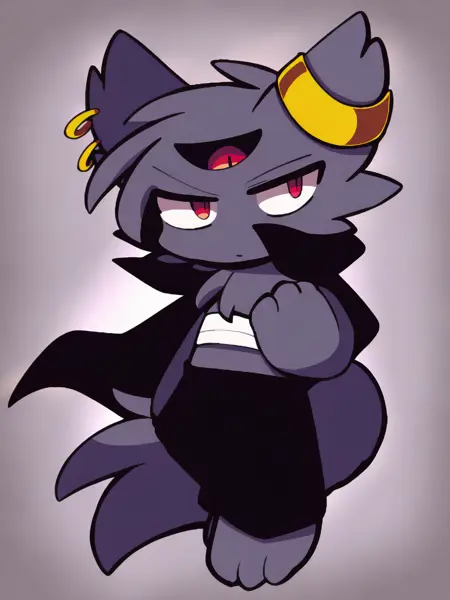 /summoner,猫,黑色长袍,带帽,灰色皮毛,无面部特征