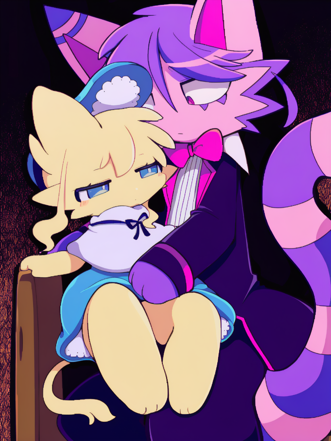 训练中使用的额外标签:chibi、cute、solo、duo、trio、group、size difference、young、dress、capelet、coat、gem brooch、bowtie、beret、cape、jacket、scarf