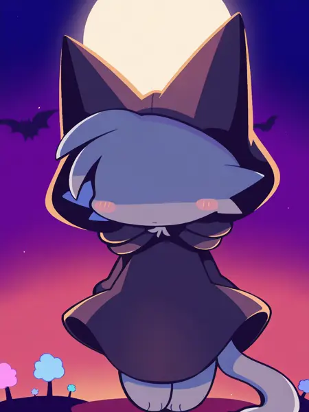 /summoner, cat, black robe, hooded, grey fur, faceless