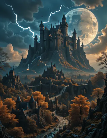 異なるシーン(嵐、夕暮れ、月明かり、森の中、城の有無など)
