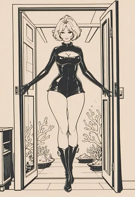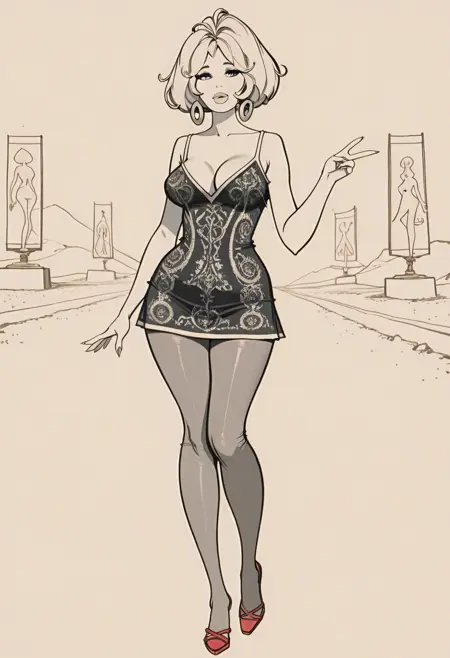 페페 곤살레스의 파멜라 비넷은 곤살레스의 고유한 하이패션, 초현실적 여성스러움, 정교한 잉크 선 스타일로 그려진 캐릭터 파멜라를 주인공으로 하는 우아하고 감각적인 일련의 일러스트레이션입니다. 각 비넷은 파멜라를 작고 자급자족하는 장면 속에 그려내며, 종종 화려하고 장난스럽거나 유혹적인 분위기를 담아내고, 극적인 조명, 섬세한 선 및 정제된 유럽식 핀업 감각으로 포착됩니다. 이 톤은 과도하지 않고 세련되며, 낭만적 에로티시즘, 패션 일러스트레이션, 부드러운 유머를 융합하여 파멜라를 곤살레스의 가장 상징적인 무즈 중 하나로 만들었습니다.